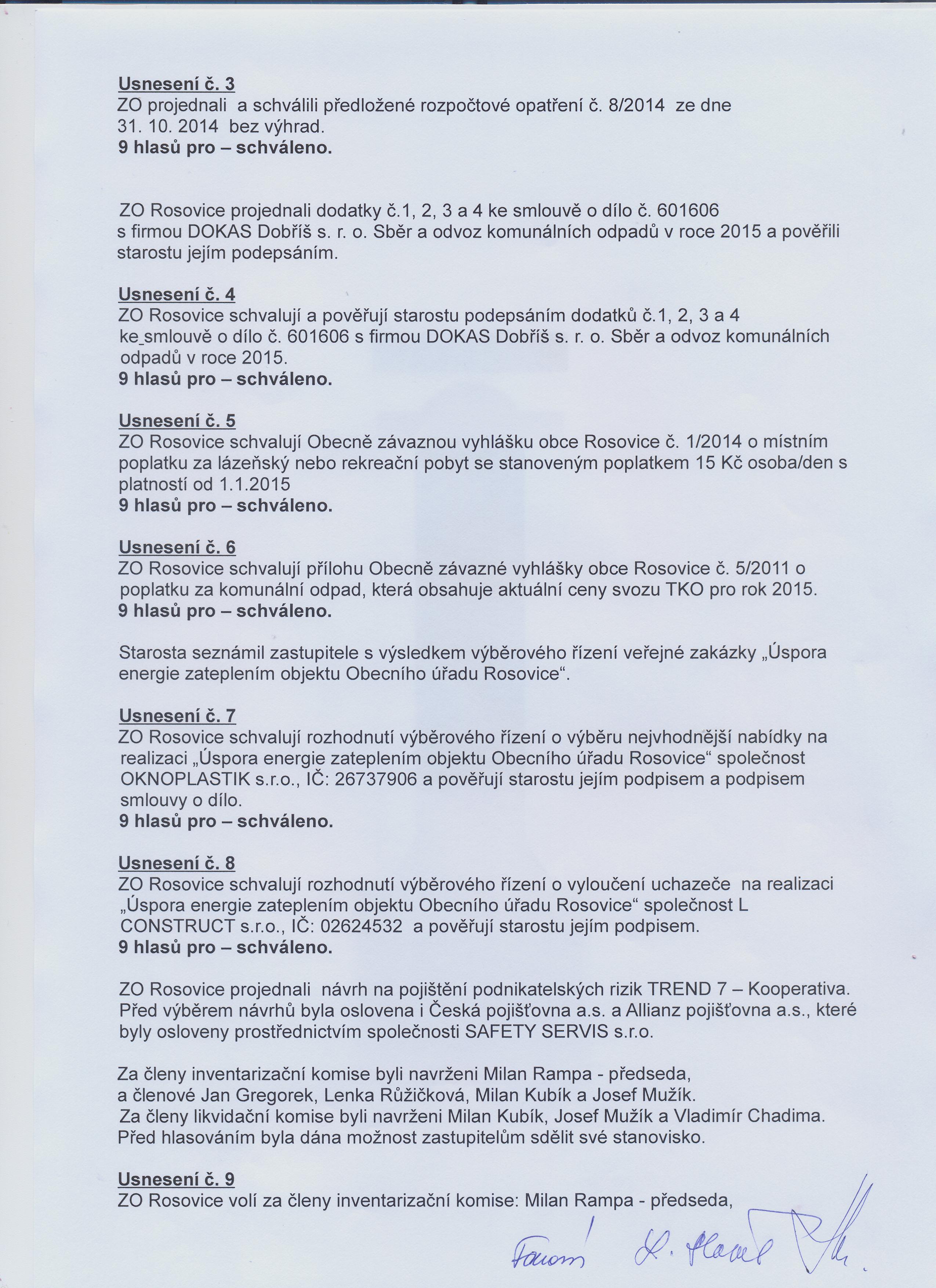 Zápis z jednání zastupitelstva obce Rosovice ze dne 24.11.2014